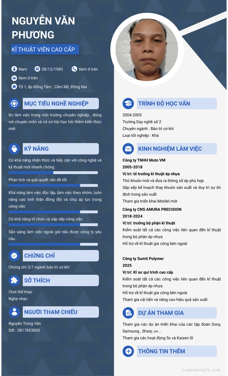 Mở xem thông tin đầy đủ ứng viên NGUYỄN VĂN PHƯƠNG chỉ với 2 điểm. Ứng viên được cập nhật ngày 23/04/2026