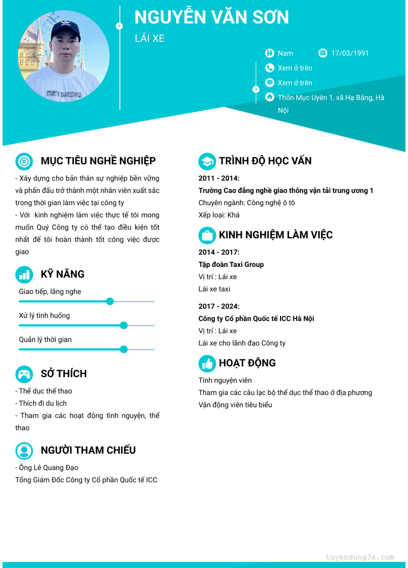 NGUYỄN VĂN SƠN ( Đang tìm việc )
