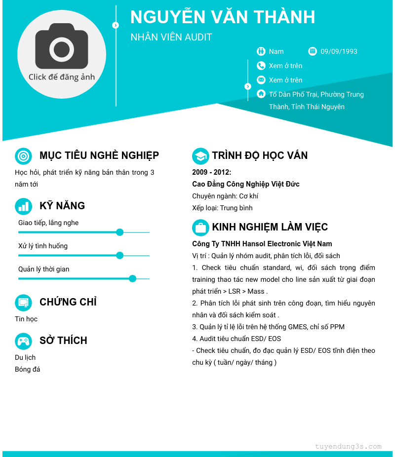 Nơi ở hiện tại: Tổ Dân Phố Trại, Phường Trung Thành, Tỉnh Thái Nguyên
