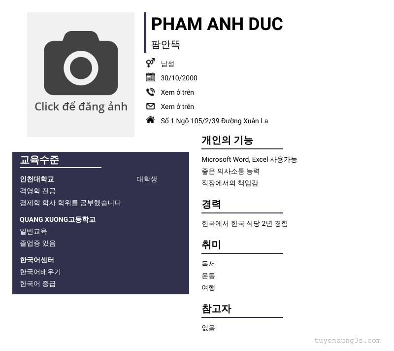 Mở xem thông tin đầy đủ ứng viên PHAM ANH DUC chỉ với 2 điểm. Ứng viên được cập nhật ngày 14/11/2025