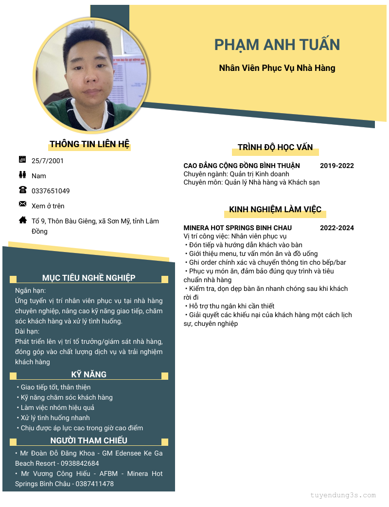 Mở xem thông tin đầy đủ ứng viên PHẠM ANH TUẤN chỉ với 2 điểm. Ứng viên được cập nhật ngày 28/02/2026