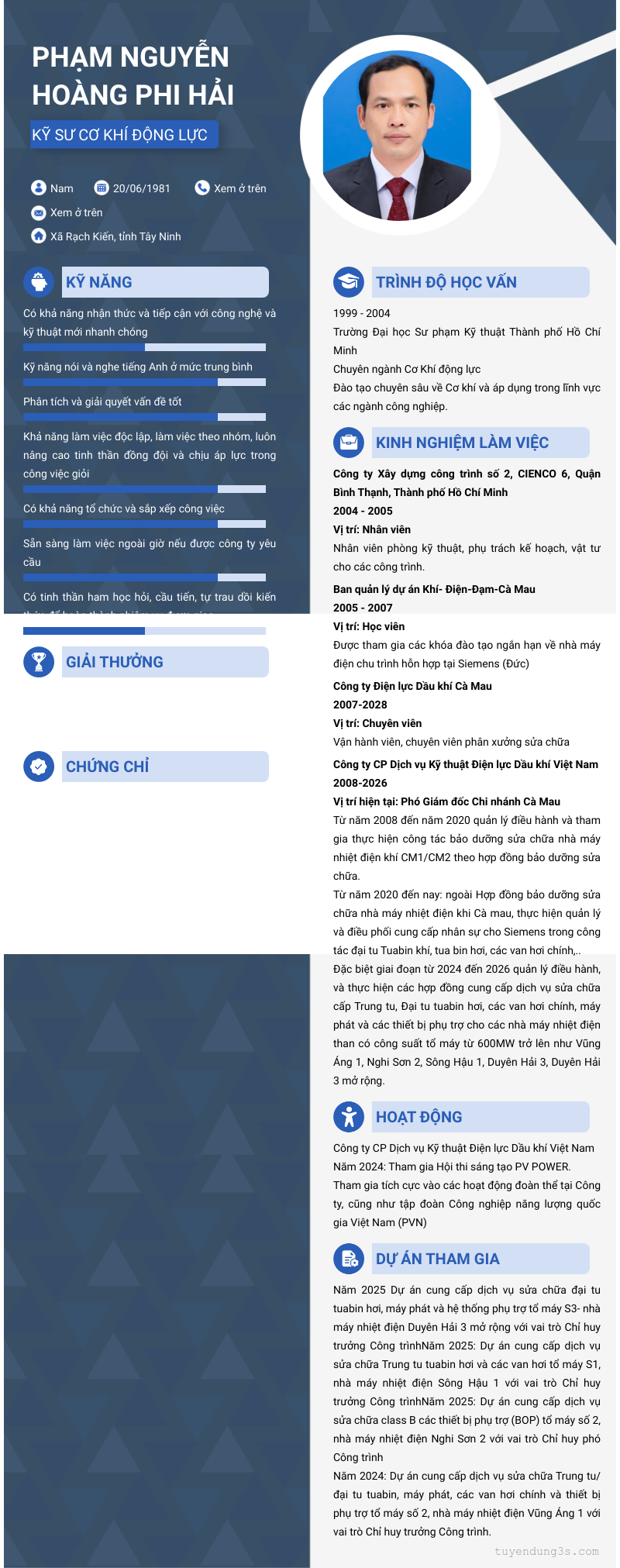Mở xem thông tin đầy đủ ứng viên PHẠM NGUYỄN HOÀNG PHI HẢI chỉ với 2 điểm. Ứng viên được cập nhật ngày 16/03/2026