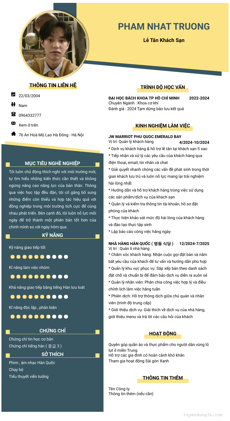 Mở xem thông tin đầy đủ ứng viên Pham Nhat Truong chỉ với 2 điểm. Ứng viên được cập nhật ngày 05/12/2025