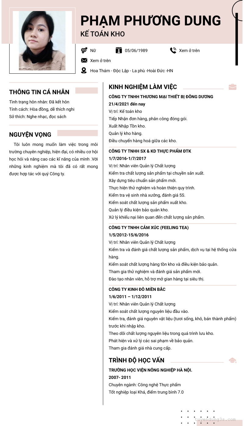 Mở xem thông tin đầy đủ ứng viên PHẠM PHƯƠNG DUNG chỉ với 2 điểm. Ứng viên được cập nhật ngày 25/03/2026