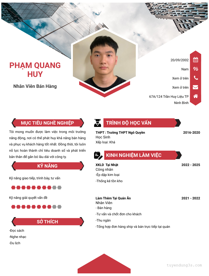 Mở xem thông tin đầy đủ ứng viên Phạm Quang Huy chỉ với 2 điểm. Ứng viên được cập nhật ngày 29/09/2025