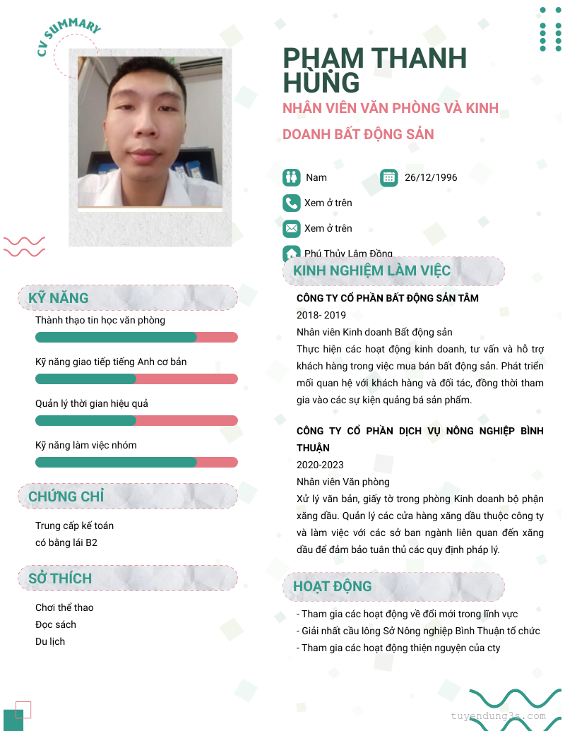 Vị trí: Nhân viên Văn phòng và Kinh doanh Bất động sản
