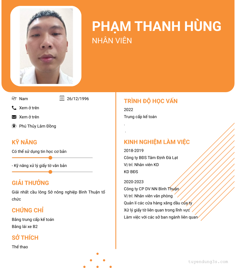Mở xem thông tin đầy đủ ứng viên Phạm Thanh Hùng chỉ với 2 điểm. Ứng viên được cập nhật ngày 08/10/2025