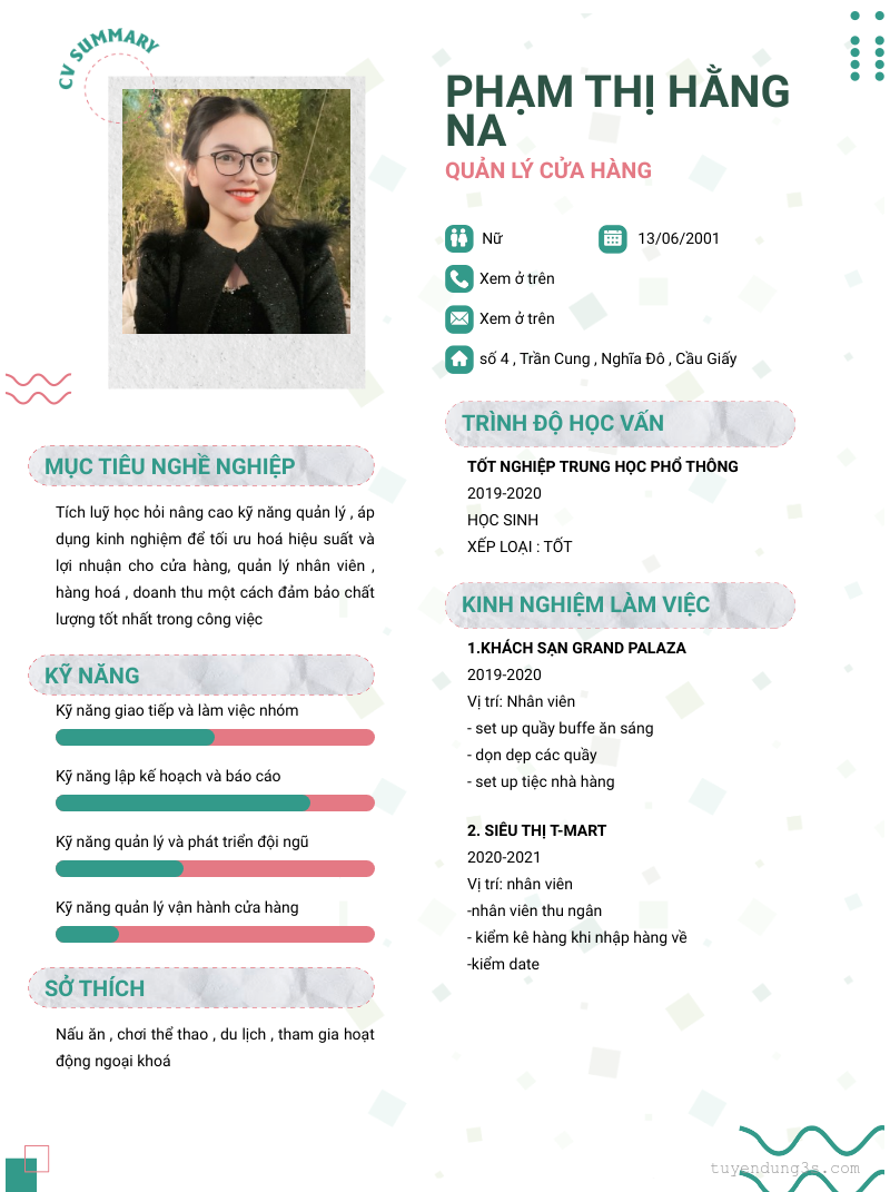 Mở xem thông tin đầy đủ ứng viên PHẠM THỊ HẰNG NA chỉ với 2 điểm. Ứng viên được cập nhật ngày 28/08/2025