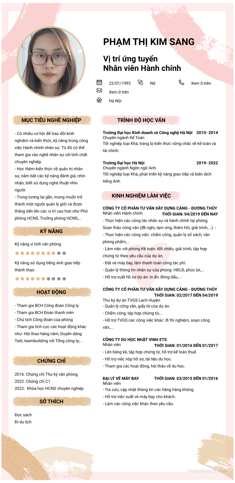 Mở xem thông tin đầy đủ ứng viên Phạm Thị Kim Sang chỉ với 2 điểm. Ứng viên được cập nhật ngày 23/09/2025