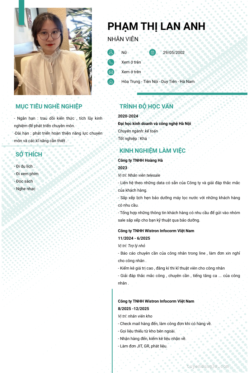 Mở xem thông tin đầy đủ ứng viên Phạm Thị Lan Anh chỉ với 2 điểm. Ứng viên được cập nhật ngày 31/03/2025