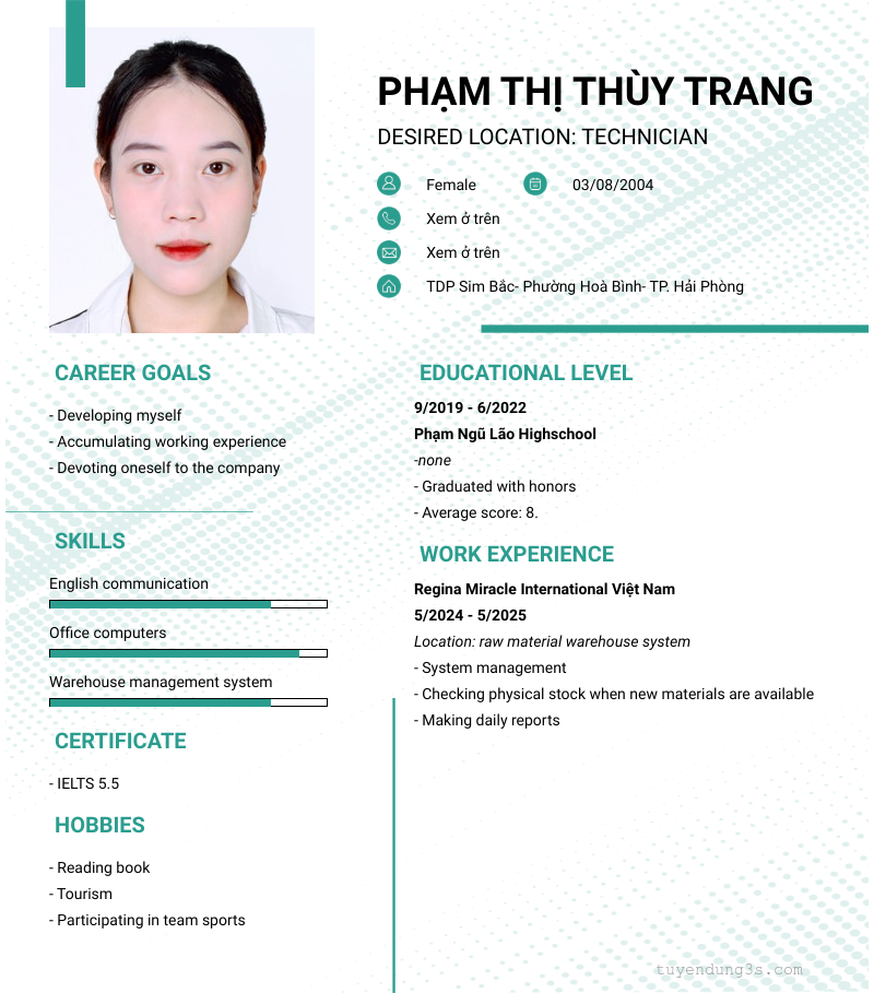 Mở xem thông tin đầy đủ ứng viên Phạm Thị Thùy Trang chỉ với 2 điểm. Ứng viên được cập nhật ngày 21/10/2025