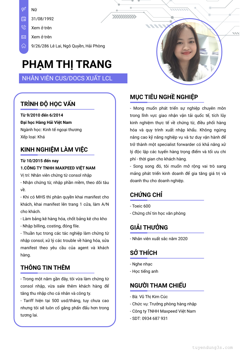 Mở xem thông tin đầy đủ ứng viên Phạm Thị Trang chỉ với 2 điểm. Ứng viên được cập nhật ngày 09/11/2025