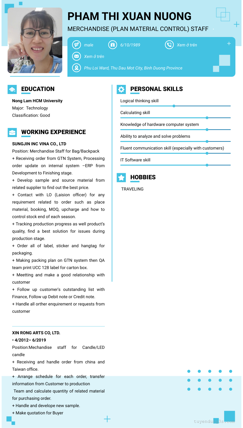 Mở xem thông tin đầy đủ ứng viên Pham Thi Xuan Nuong chỉ với 2 điểm. Ứng viên được cập nhật ngày 08/10/2025
