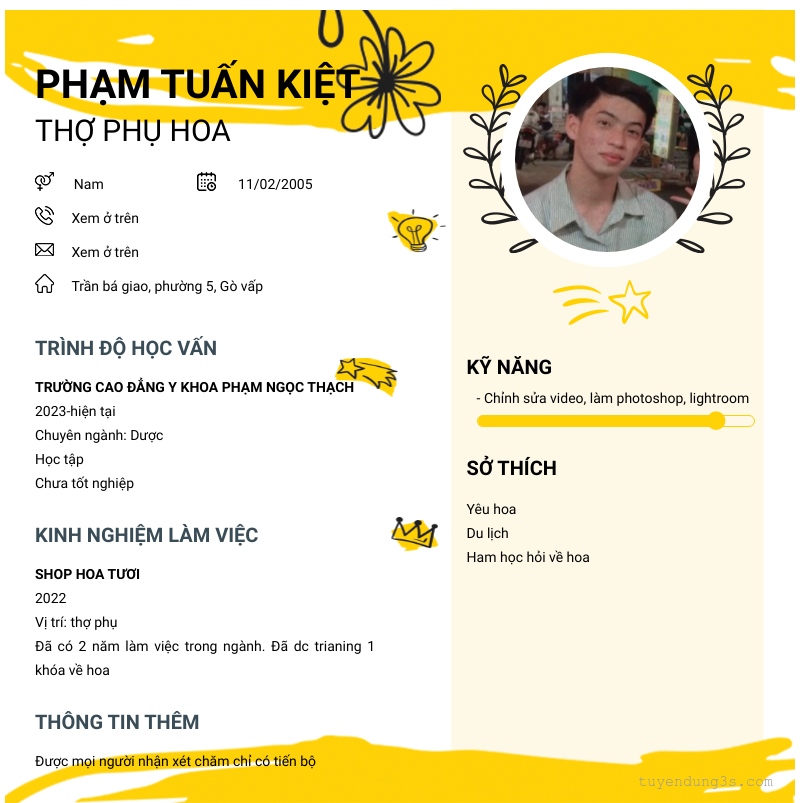 Nơi ở hiện tại: Trần bá giao, phường 5, Gò vấp