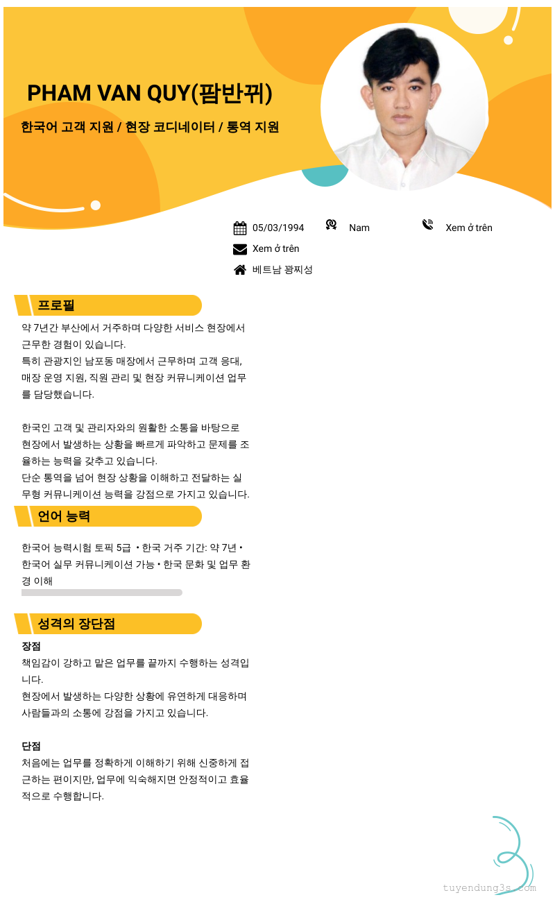 Mở xem thông tin đầy đủ ứng viên PHAM VAN QUY chỉ với 2 điểm. Ứng viên được cập nhật ngày 08/03/2026
