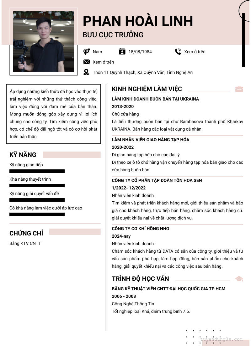 Mở xem thông tin đầy đủ ứng viên Phan Hoài Linh chỉ với 2 điểm. Ứng viên được cập nhật ngày 03/09/2025