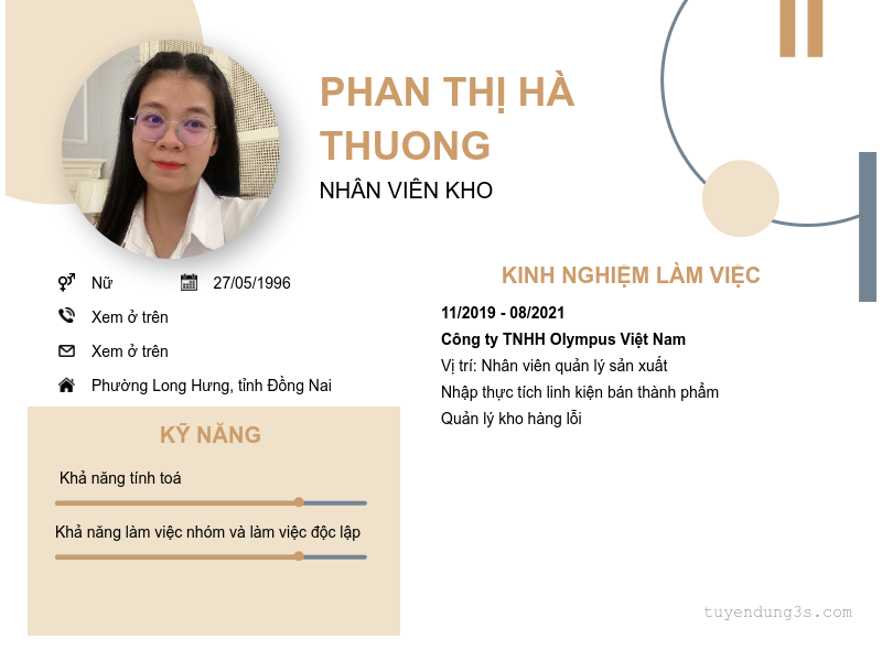Mở xem thông tin đầy đủ ứng viên Phan Thị Hà Thuong chỉ với 2 điểm. Ứng viên được cập nhật ngày 21/09/2025