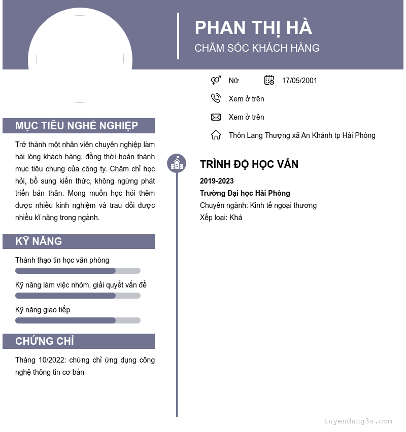 Mở xem thông tin đầy đủ ứng viên Phan Thị Hà chỉ với 2 điểm. Ứng viên được cập nhật ngày 03/03/2026