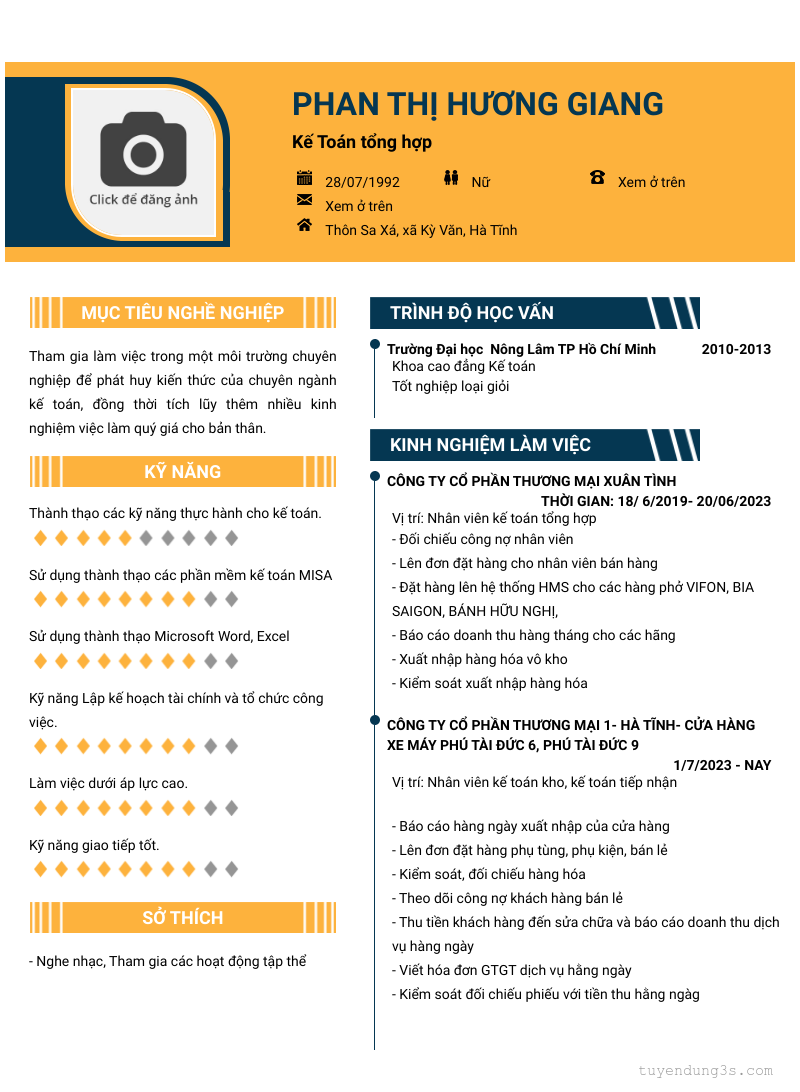 Mở xem thông tin đầy đủ ứng viên Phan Thị Hương Giang chỉ với 2 điểm. Ứng viên được cập nhật ngày 30/10/2025