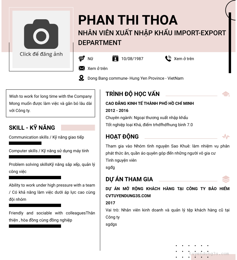 Vị trí: NHÂN VIÊN XUẤT NHẬP KHẨU IMPORT-EXPORT DEPARTMENT