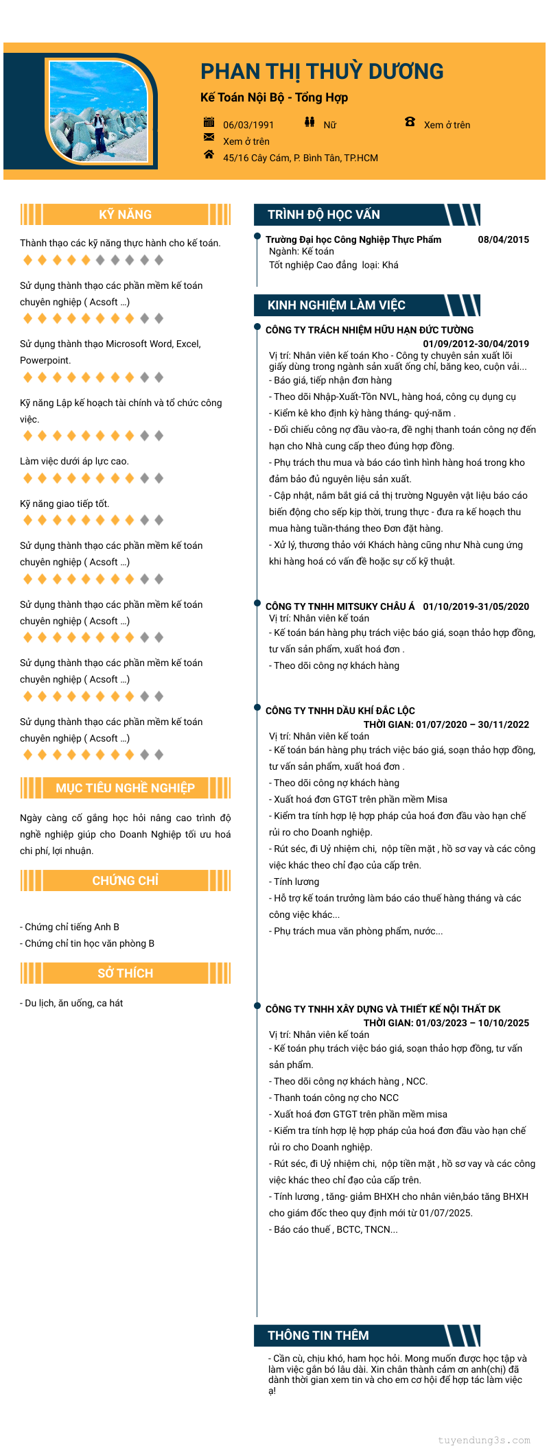 Mở xem thông tin đầy đủ ứng viên PHAN THỊ THUỲ DƯƠNG chỉ với 2 điểm. Ứng viên được cập nhật ngày 10/10/2025