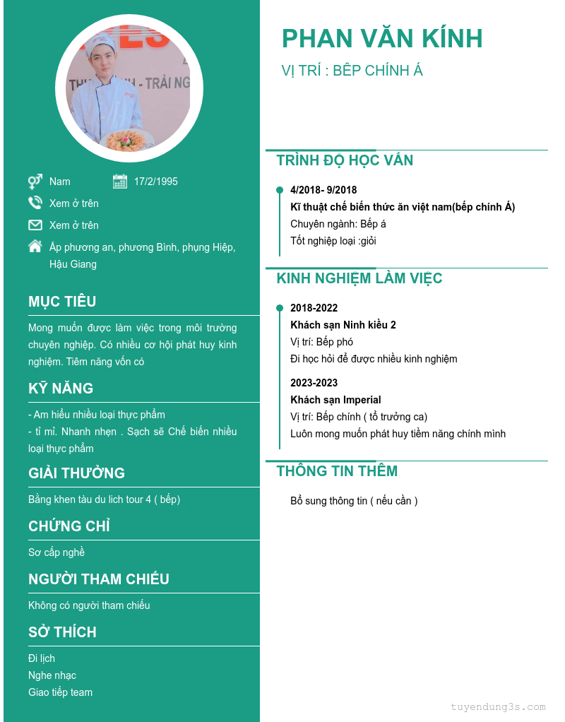 Nơi ở hiện tại: Ấp phương an, phương Bình, phụng Hiệp, Hậu Giang