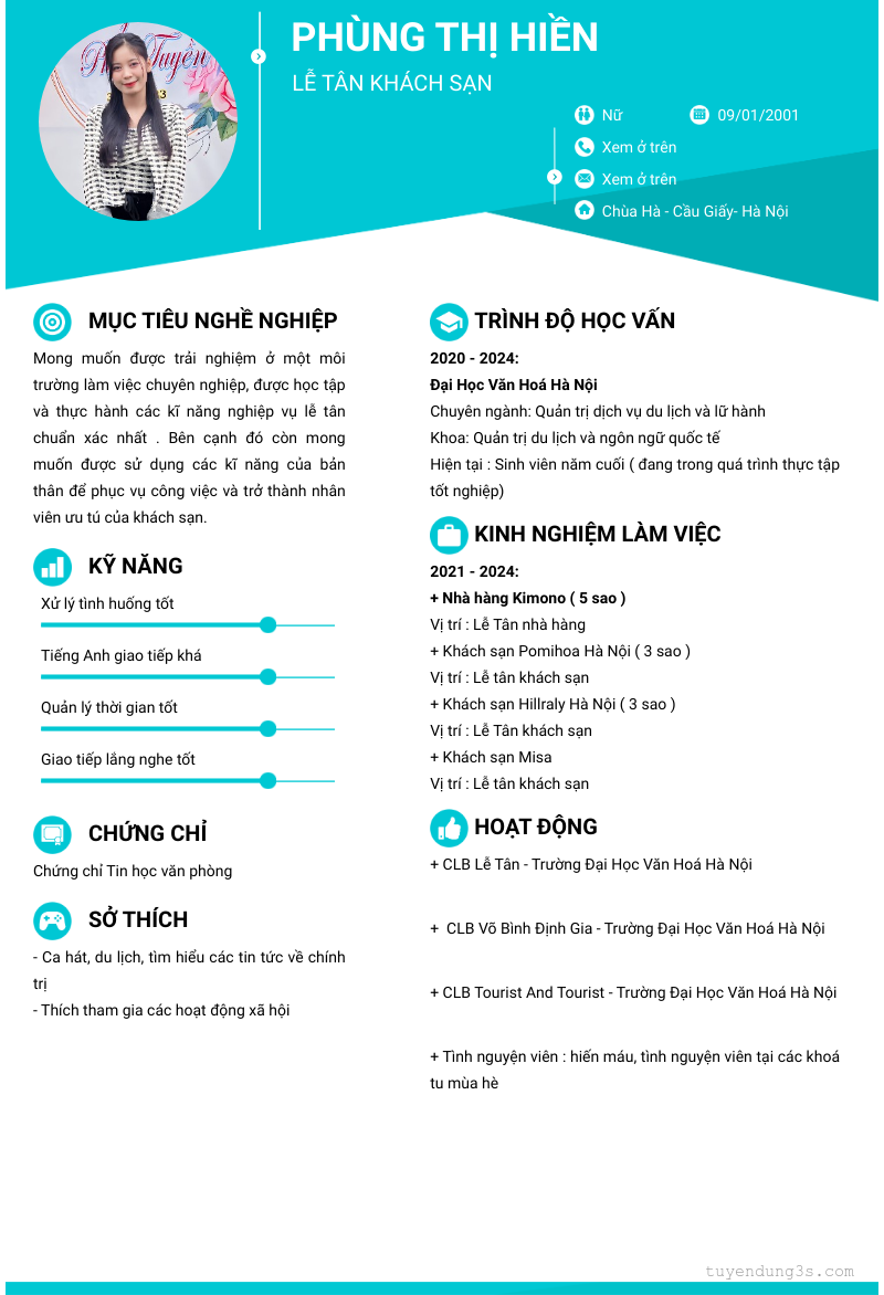 Mở xem thông tin đầy đủ ứng viên Phùng Thị Hiền chỉ với 2 điểm. Ứng viên được cập nhật ngày 13/03/2024
