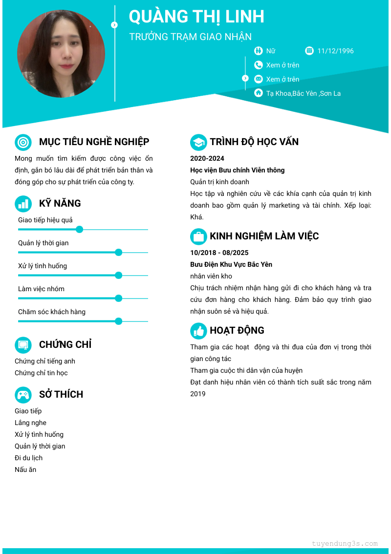 Mở xem thông tin đầy đủ ứng viên Quàng Thị Linh chỉ với 2 điểm. Ứng viên được cập nhật ngày 03/11/2025
