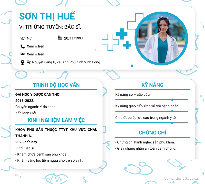 Vị trí: Vị trí ứng tuyển: bác sĩ.