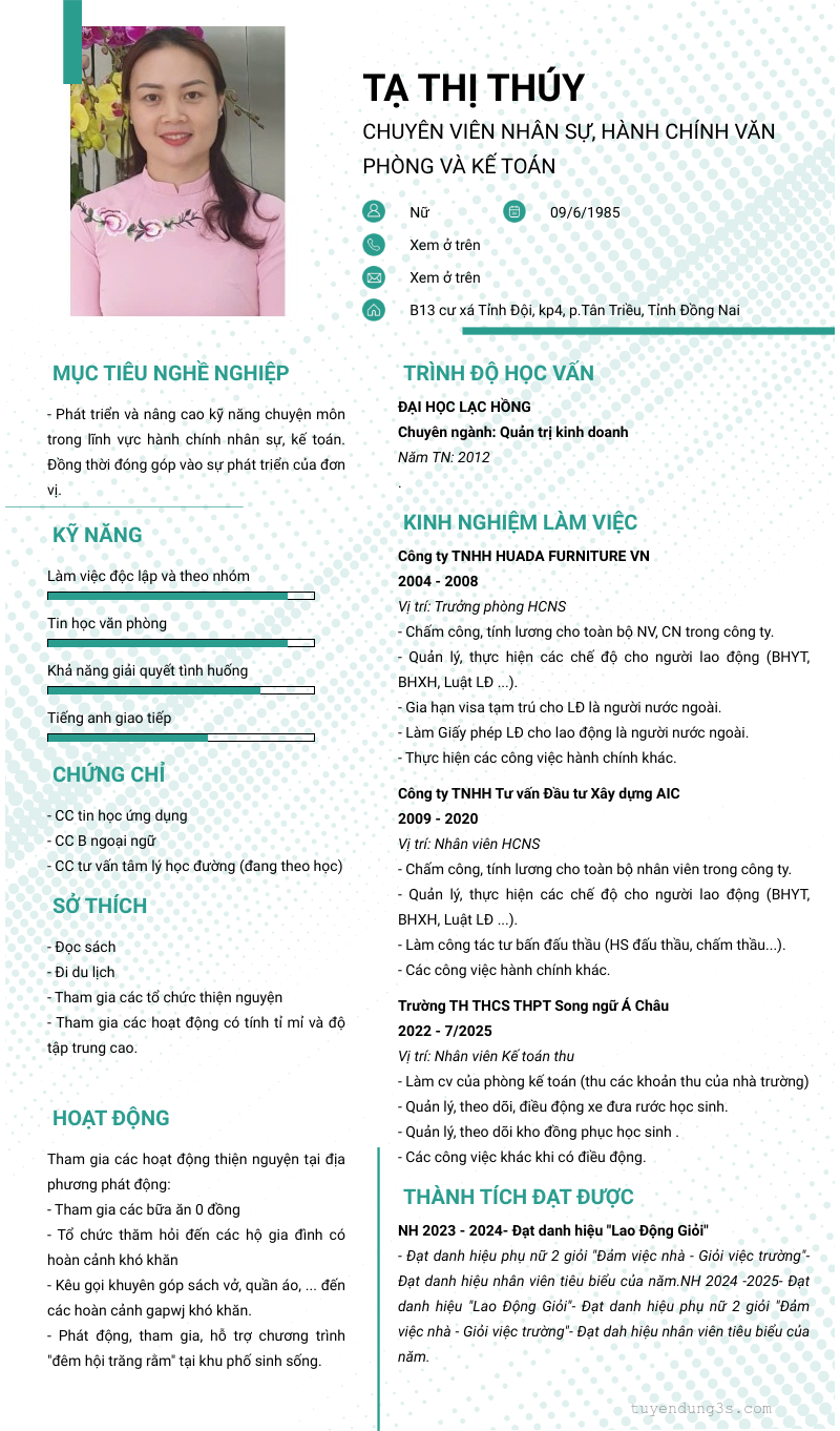 Mở xem thông tin đầy đủ ứng viên TẠ THỊ THÚY chỉ với 2 điểm. Ứng viên được cập nhật ngày 29/10/2025