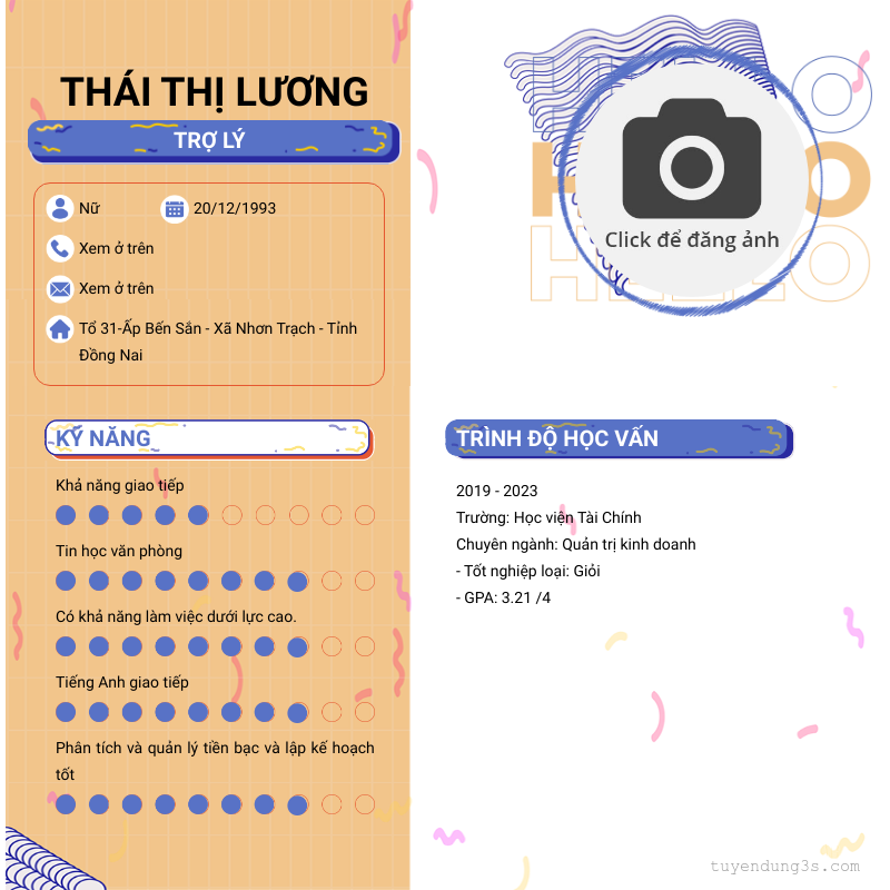 Mở xem thông tin đầy đủ ứng viên THÁI THỊ LƯƠNG chỉ với 2 điểm. Ứng viên được cập nhật ngày 22/03/2026