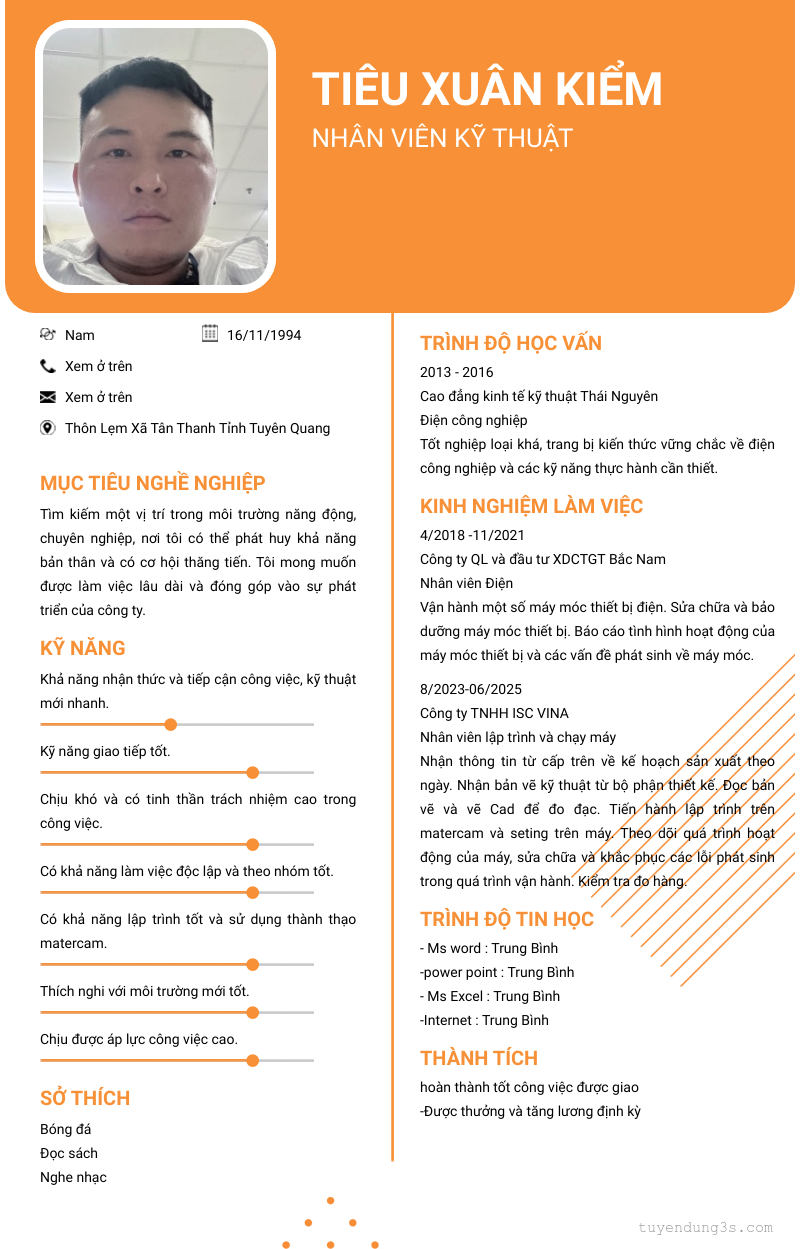 Mở xem thông tin đầy đủ ứng viên Tiêu Xuân Kiểm chỉ với 2 điểm. Ứng viên được cập nhật ngày 15/03/2026