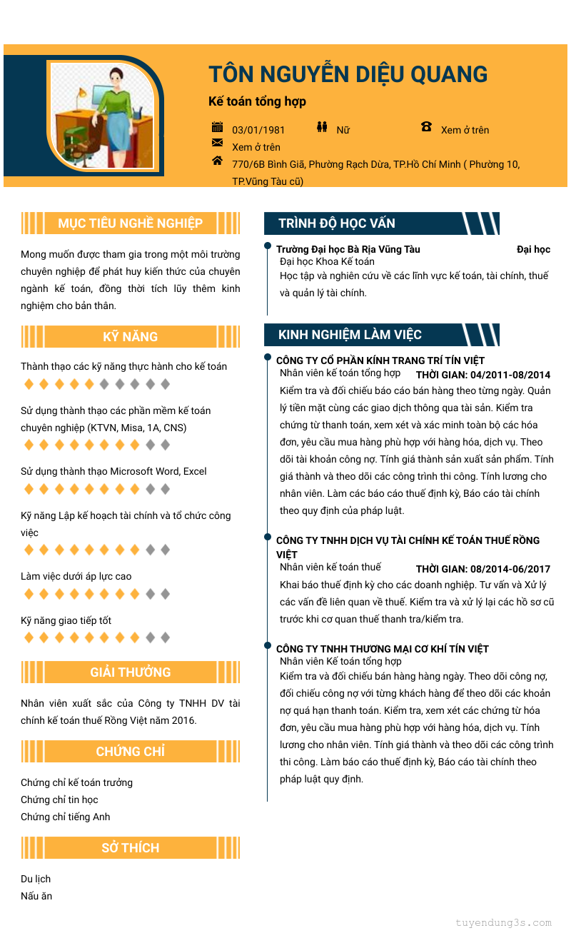 Mở xem thông tin đầy đủ ứng viên TÔN NGUYỄN DIỆU QUANG chỉ với 2 điểm. Ứng viên được cập nhật ngày 27/12/2025