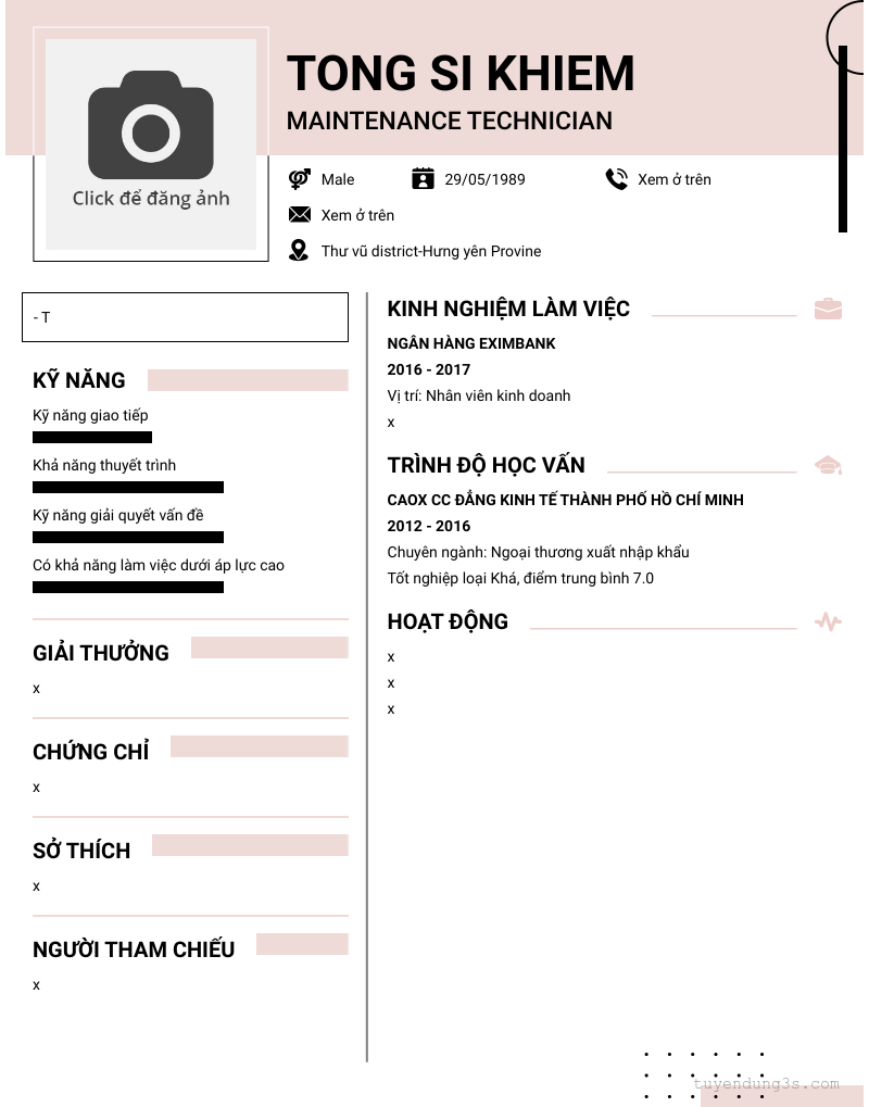 Mở xem thông tin đầy đủ ứng viên TONG SI KHIEM chỉ với 2 điểm. Ứng viên được cập nhật ngày 22/01/2026