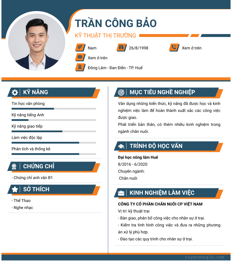 Mở xem thông tin đầy đủ ứng viên Trần Công Bảo chỉ với 2 điểm. Ứng viên được cập nhật ngày 24/04/2026