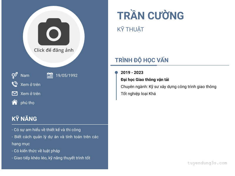 Mở xem thông tin đầy đủ ứng viên Trần Cường chỉ với 2 điểm. Ứng viên được cập nhật ngày 09/02/2026
