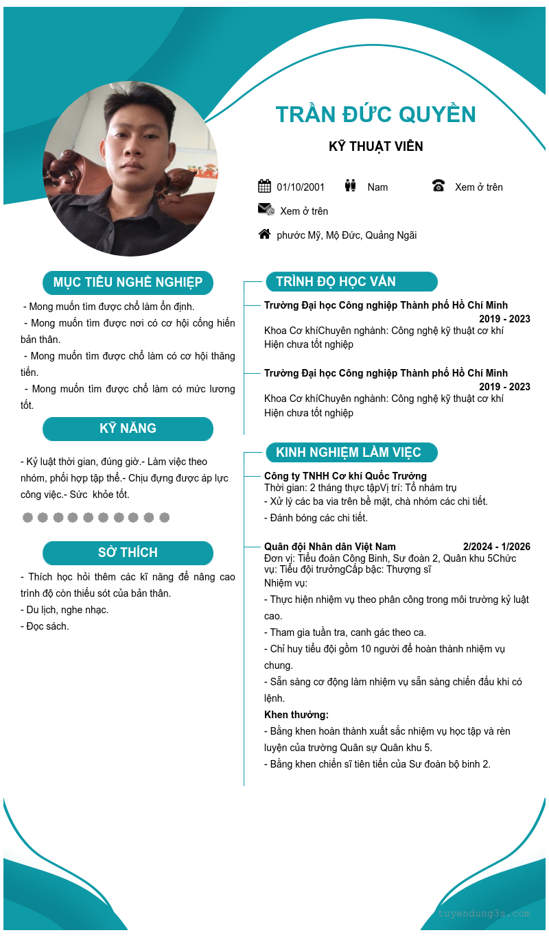 Mở xem thông tin đầy đủ ứng viên Trần đức Quyền chỉ với 2 điểm. Ứng viên được cập nhật ngày 27/02/2026