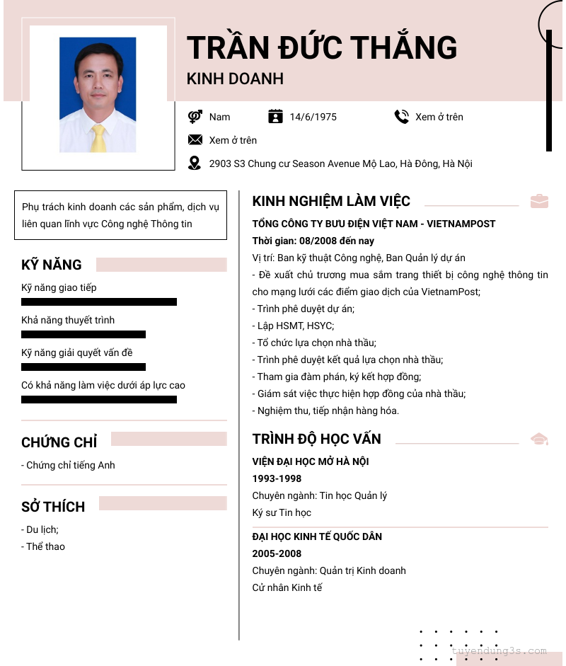 Mở xem thông tin đầy đủ ứng viên TRẦN ĐỨC THắng chỉ với 2 điểm. Ứng viên được cập nhật ngày 10/11/2025