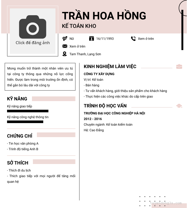 Mở xem thông tin đầy đủ ứng viên Trần Hoa Hồng chỉ với 2 điểm. Ứng viên được cập nhật ngày 01/10/2025