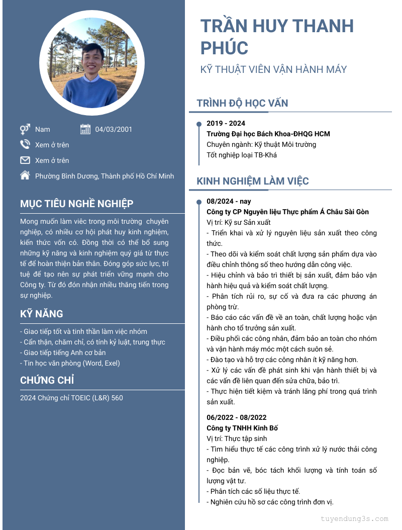 Mở xem thông tin đầy đủ ứng viên TRẦN HUY THANH PHÚC chỉ với 2 điểm. Ứng viên được cập nhật ngày 01/02/2026