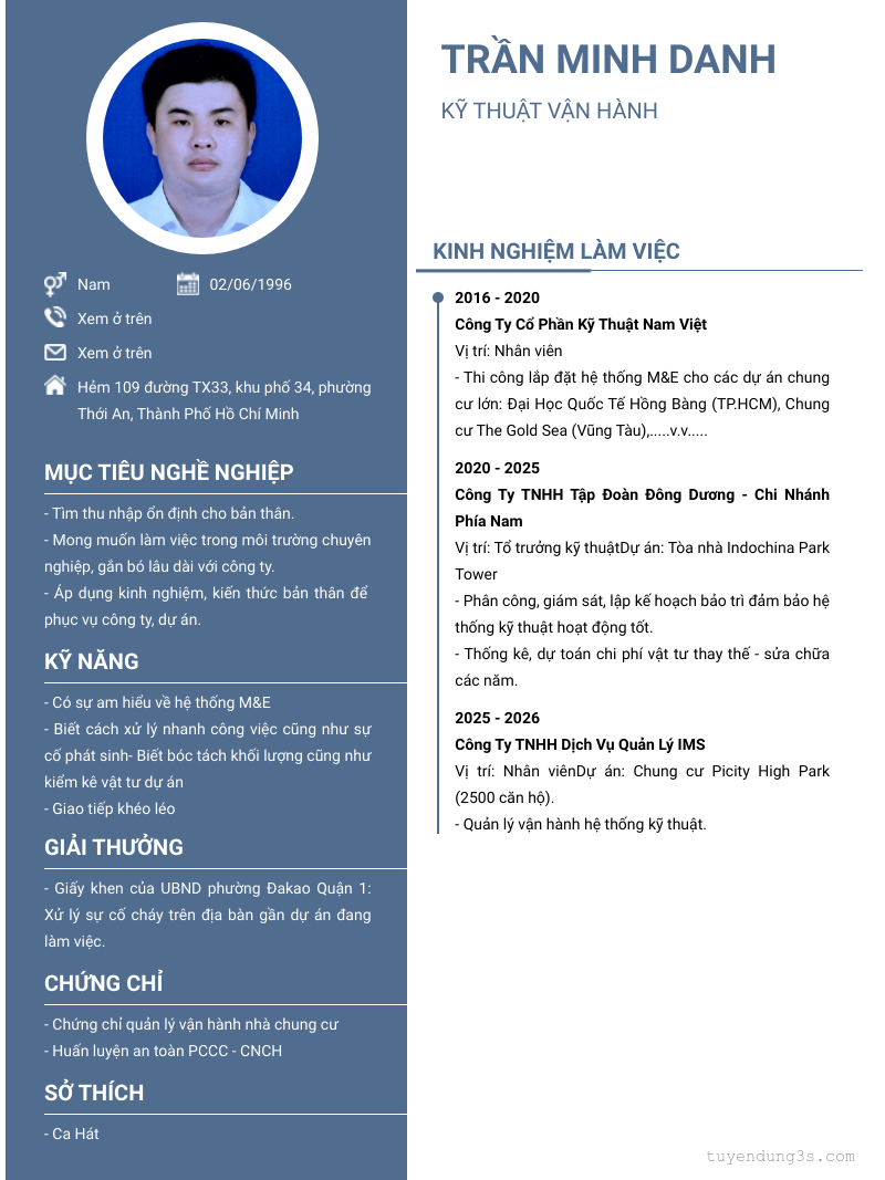 Mở xem thông tin đầy đủ ứng viên Trần Minh Danh chỉ với 2 điểm. Ứng viên được cập nhật ngày 08/03/2026