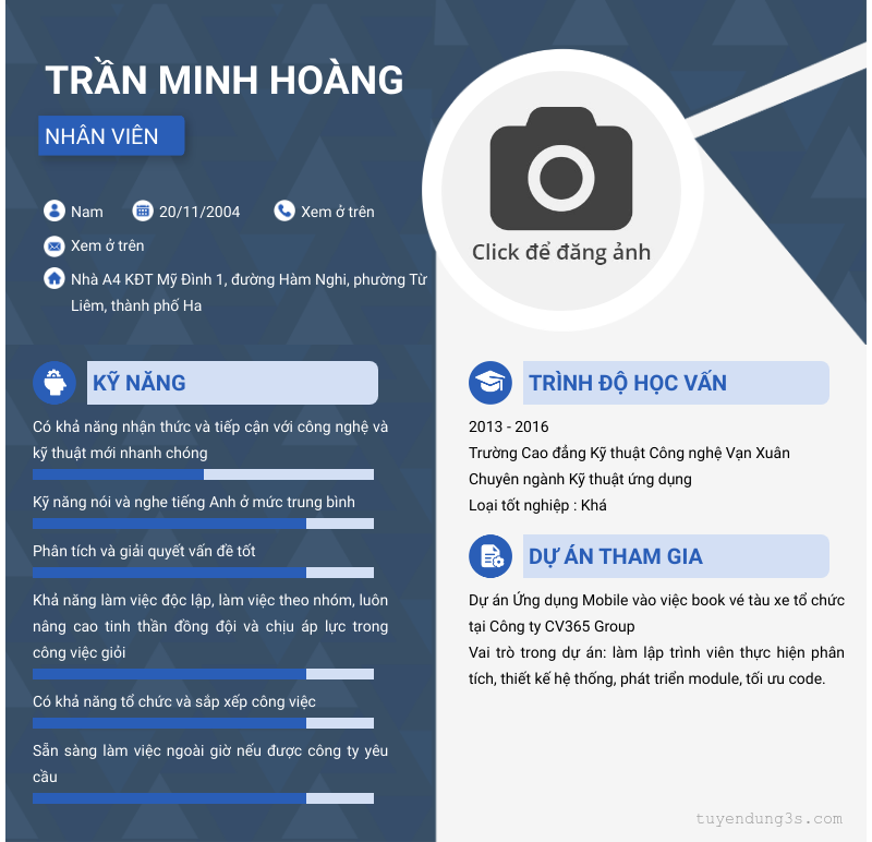 Mở xem thông tin đầy đủ ứng viên TRẦN MINH HOÀNG chỉ với 2 điểm. Ứng viên được cập nhật ngày 16/03/2026