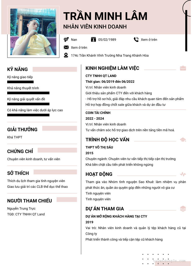 Nơi ở hiện tại: 174c Trần Khánh Vĩnh Trường Nha Trang Khánh Hòa
