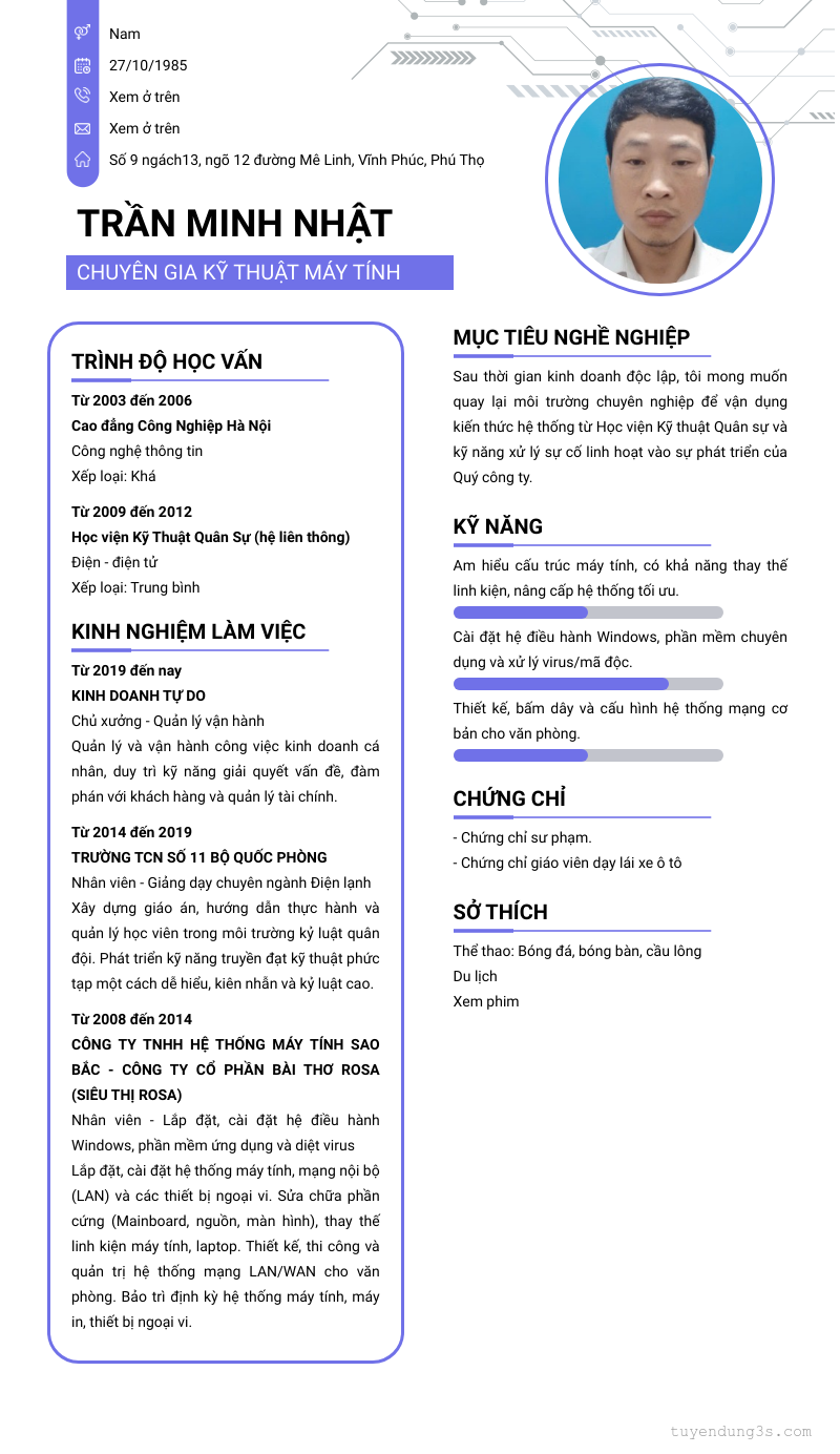 Mở xem thông tin đầy đủ ứng viên Trần Minh Nhật chỉ với 2 điểm. Ứng viên được cập nhật ngày 06/04/2026