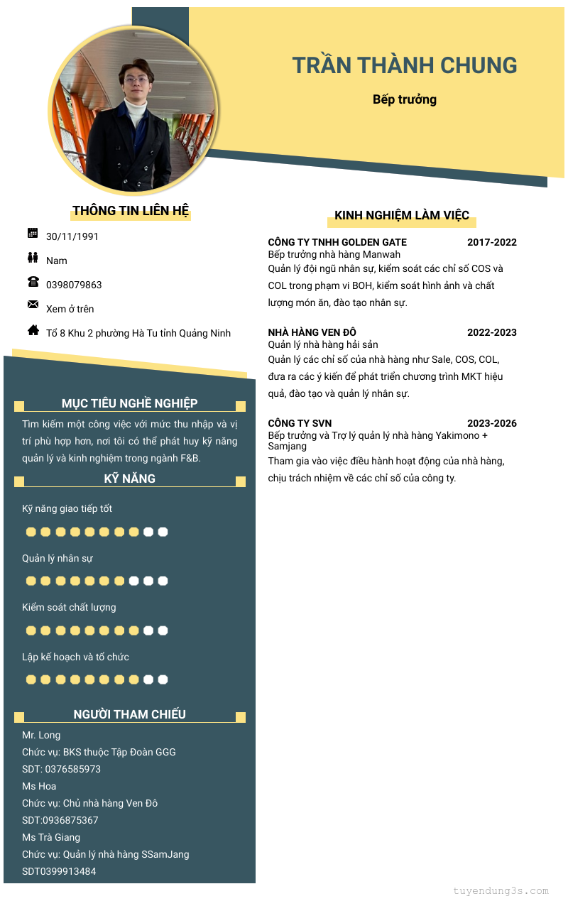 Mở xem thông tin đầy đủ ứng viên Trần Thành Chung chỉ với 2 điểm. Ứng viên được cập nhật ngày 23/02/2026