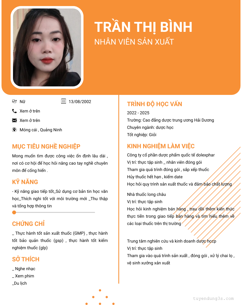 Mở xem thông tin đầy đủ ứng viên Trần Thị Bình chỉ với 2 điểm. Ứng viên được cập nhật ngày 15/10/2025