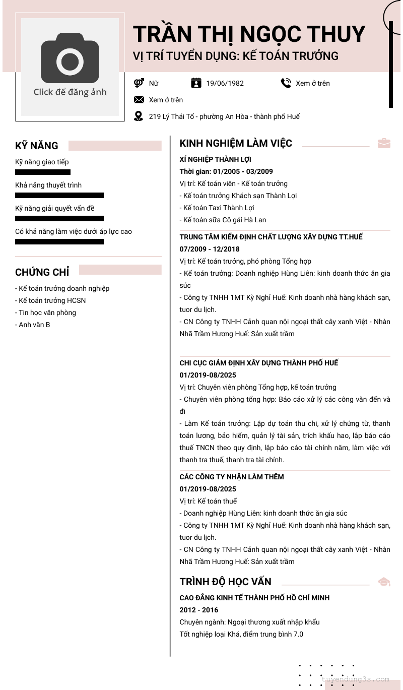 Mở xem thông tin đầy đủ ứng viên TRẦN THỊ NGỌC THUY chỉ với 2 điểm. Ứng viên được cập nhật ngày 07/10/2025
