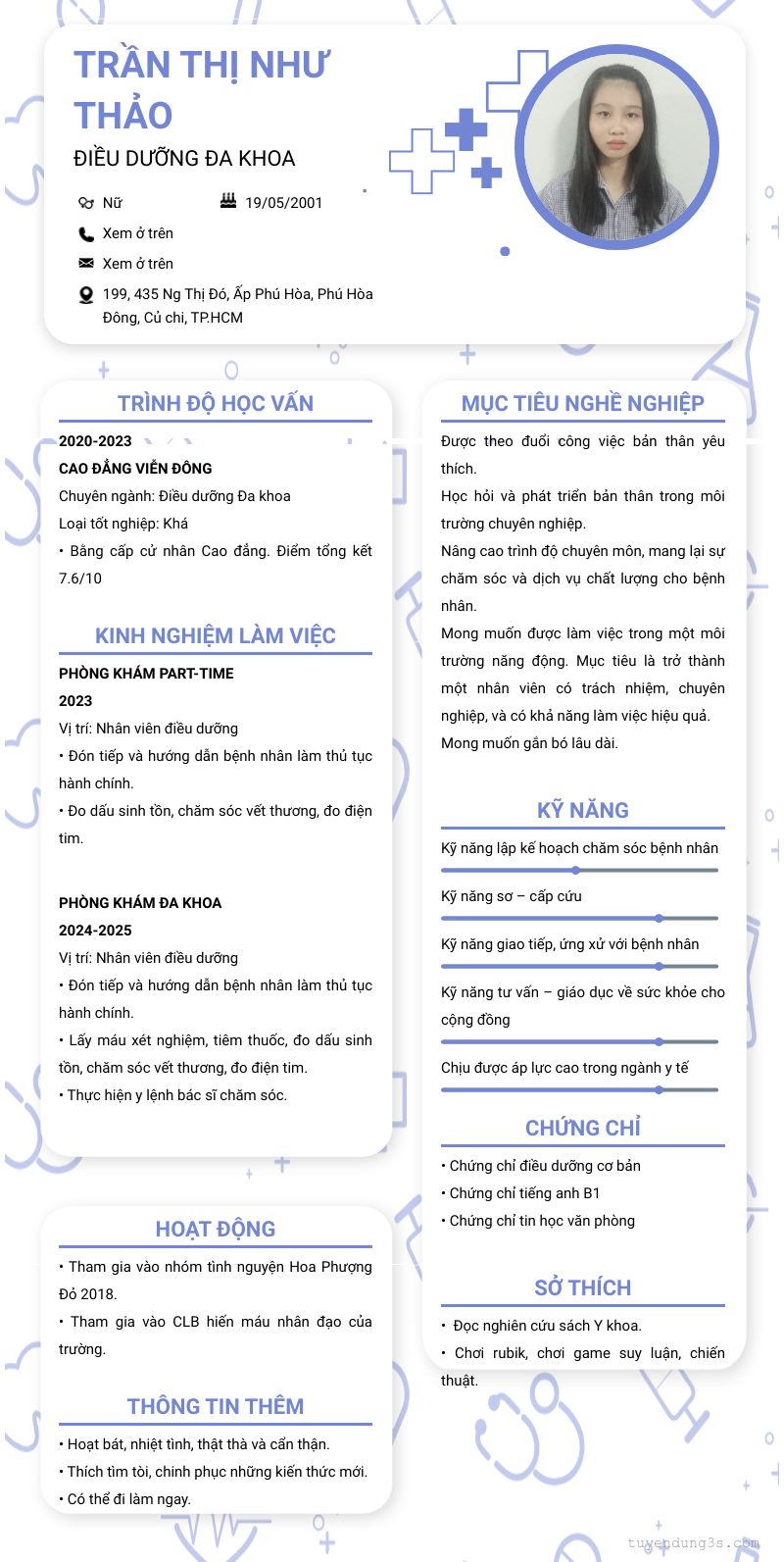 Mở xem thông tin đầy đủ ứng viên TRẦN Thị Như Thảo chỉ với 2 điểm. Ứng viên được cập nhật ngày 14/02/2025