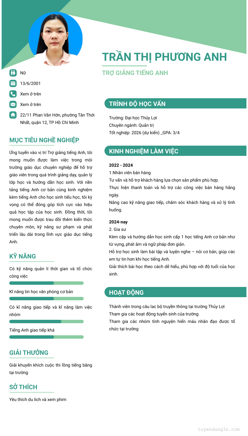 Vị trí: trợ giảng tiếng anh