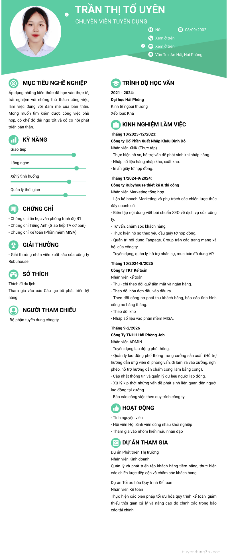 Mở xem thông tin đầy đủ ứng viên TRần Thị Tố Uyên chỉ với 2 điểm. Ứng viên được cập nhật ngày 10/04/2026
